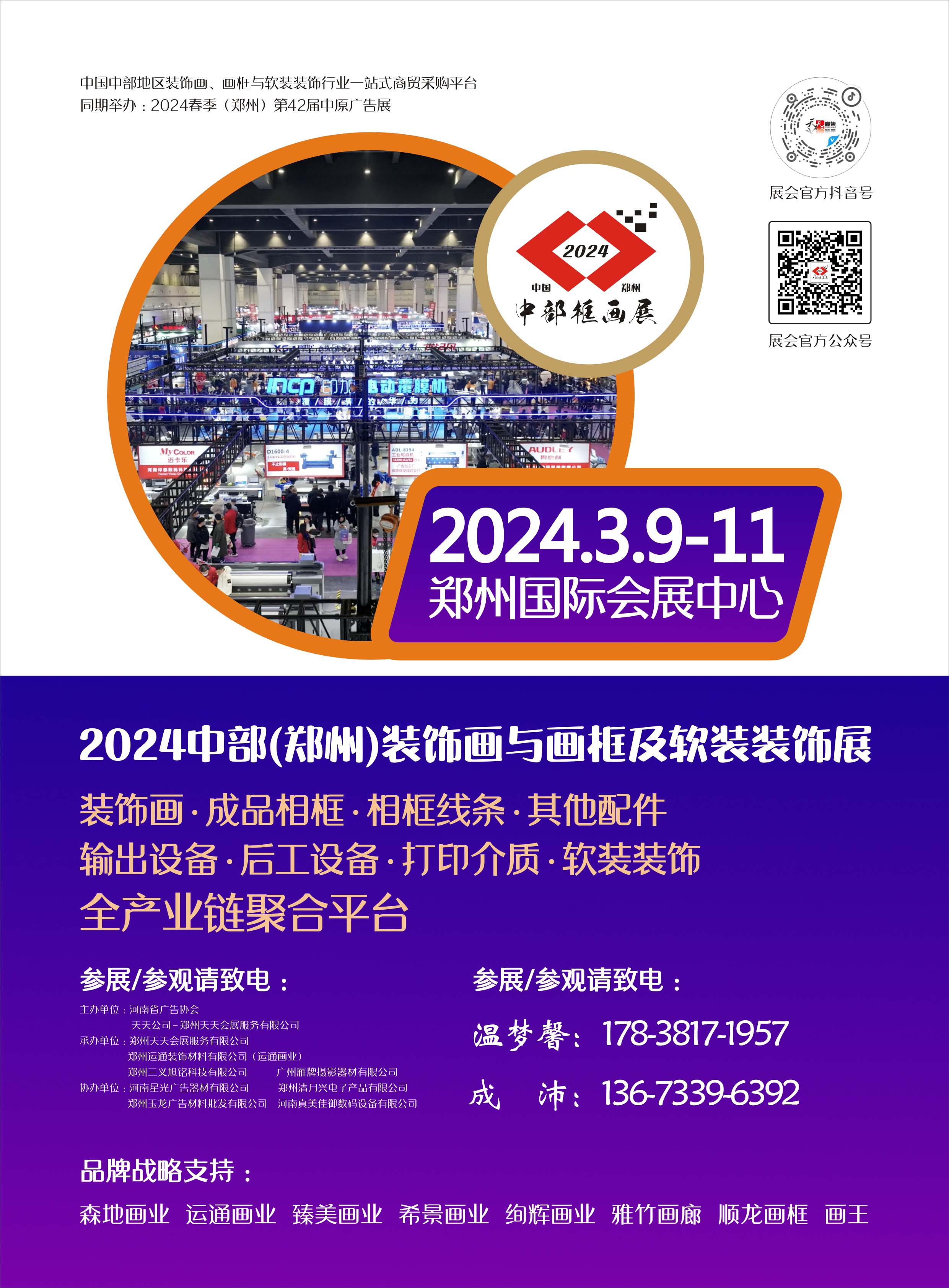 展會(huì)繼續(xù)與主辦方天天公司旗下知名展會(huì)——中原廣告展同期同地舉辦,兩展同開,有助于打通行業(yè)渠道,延伸裝飾畫、畫框與軟裝裝飾領(lǐng)域產(chǎn)品的深度,通過天天公司獨(dú)有的大數(shù)據(jù)庫(kù)營(yíng)銷和推廣宣傳手段,繼續(xù)為廣大展商提供精準(zhǔn)的內(nèi)銷市場(chǎng)拓展服務(wù),是廣大廠商、代理商、經(jīng)銷商、品牌企業(yè)集中維護(hù)老客戶、拓展新客戶的高回報(bào)平臺(tái)。